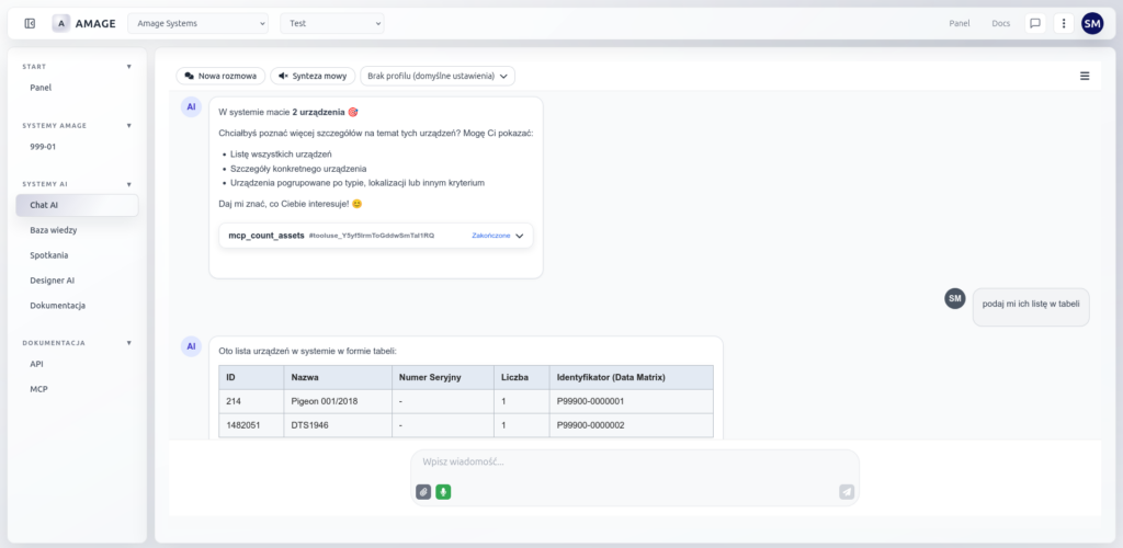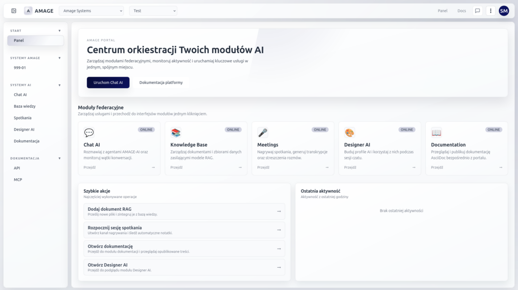 - integracje z instancjami AMAGE i systemami zewnętrznymi, aby AI pracowało na aktualnym i wiarygodnym kontekście.