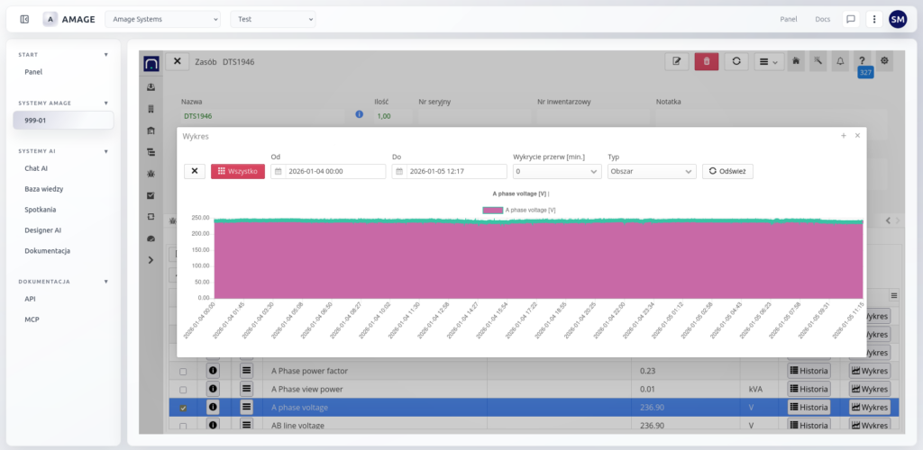 - integracje z AMAGE i systemami zewnętrznymi, aby agent mógł działać na aktualnych danych (np. ERP, BMS/SCADA, repozytoria dokumentów),