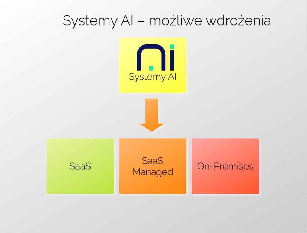 - On‑Premises (infrastruktura klienta) – pełna izolacja i kontrola, rekomendowane przy najwyższych wymaganiach bezpieczeństwa oraz regulacyjnych.